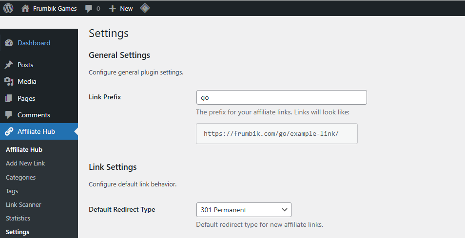 1) Go to Affiliate Hub β Settings and set your link prefix (default: go)