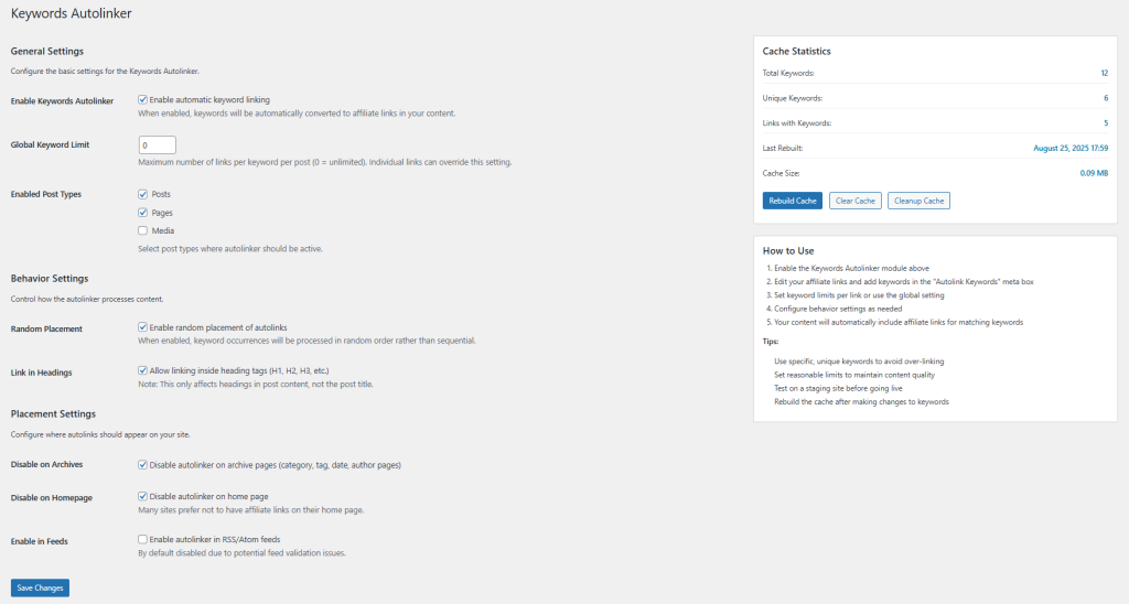 * **Link Scanner Module** – Scan your site for broken or redirected affiliate links, get detailed reports, and improve your link health automatically