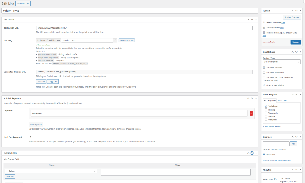 Professional affiliate link management for WordPress. Create clean, branded links and boost your affiliate marketing success.